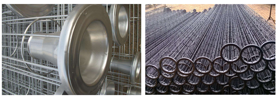 除塵器骨架也稱除塵袋籠,是濾袋的“肋骨”,采用專用設(shè)備一次焊接成型,材質(zhì)為鐵絲或不銹鋼絲,表面后處理采用鍍鋅、噴塑、有機(jī)硅等方式。